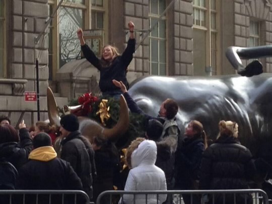 Suddenly I found that I needed more support at school. I was struggling to get through the day. It was my economics teacher who stepped in. He let me come to his classroom when I was having a hard time. He listened to me when I had no one to talk to. He was kind to me. He opened up about his own mental health struggles when appropriate and made me feel less alone. When I was going through a particularly difficult time, we happened to be going on a field trip to New York City and he knew I had always wanted to sit on the Wall Street bull statue. Even though there were tourists everywhere, we got to the front and he helped me up so we could get a picture (probably/definitely broke some rules but whatever). I still smile when I see that picture.